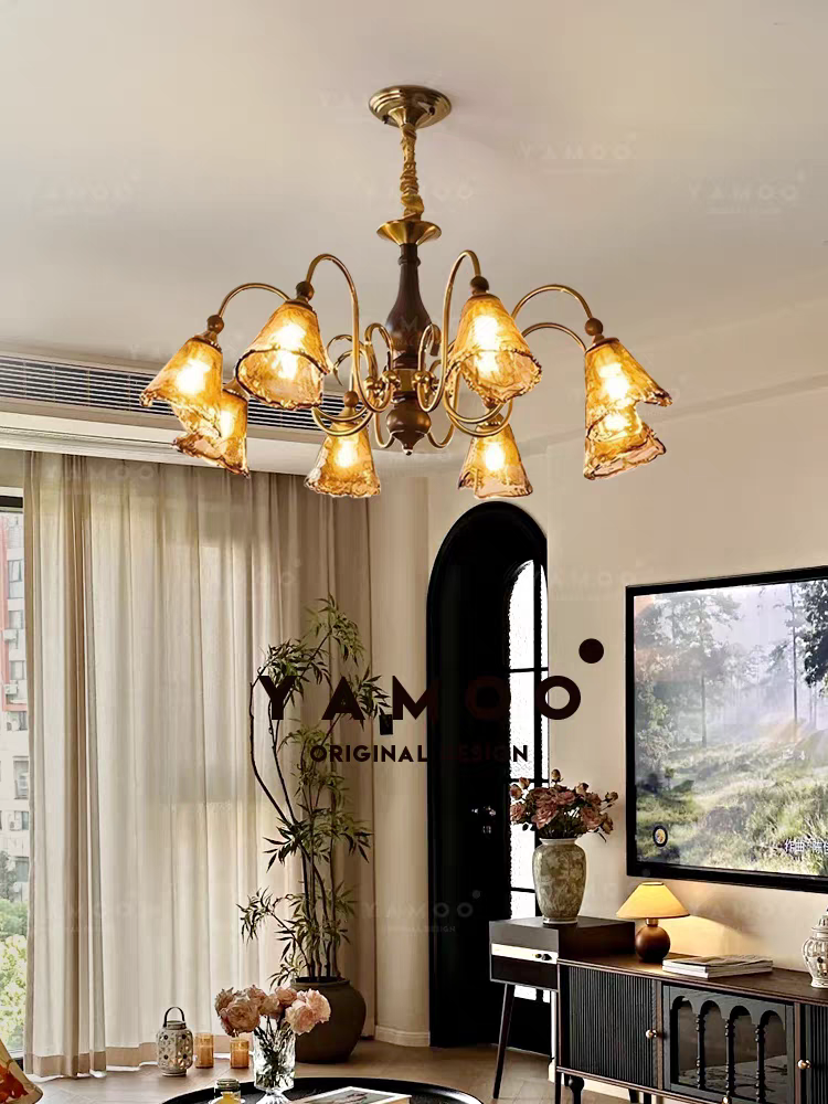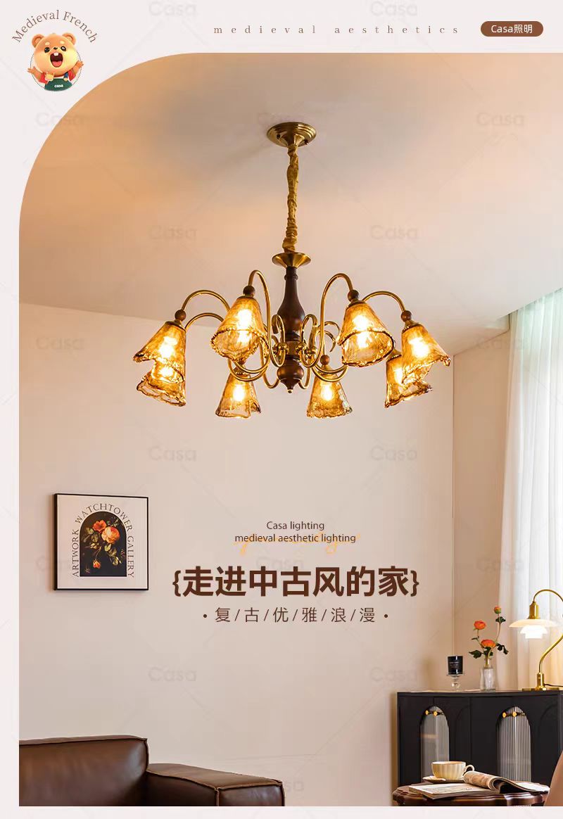 主体材质:铁艺电镀+琥珀灯罩