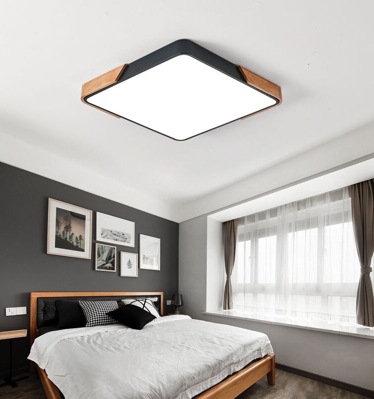 卧室一:木边方形黑:500mm LED三色变光