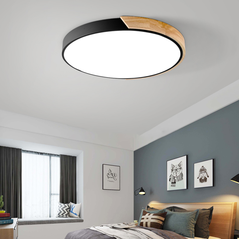 卧室二:木边圆形黑:500mm LED三色变光