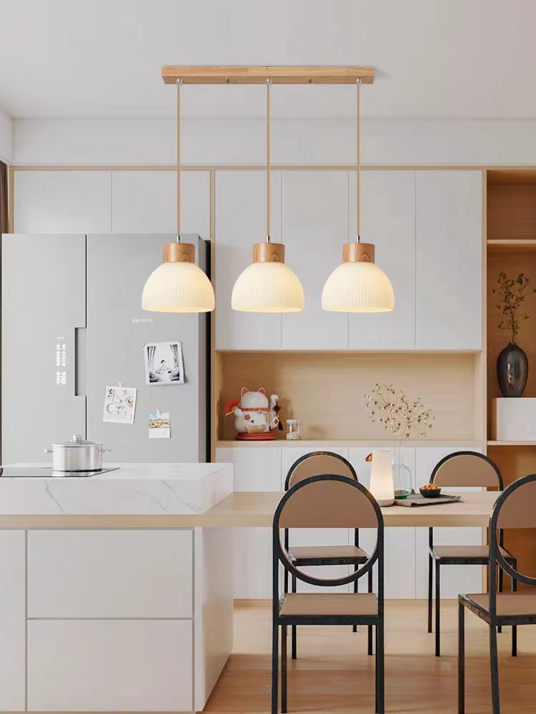 餐厅:条纹木艺餐吊:3头 E27*3个(不含)