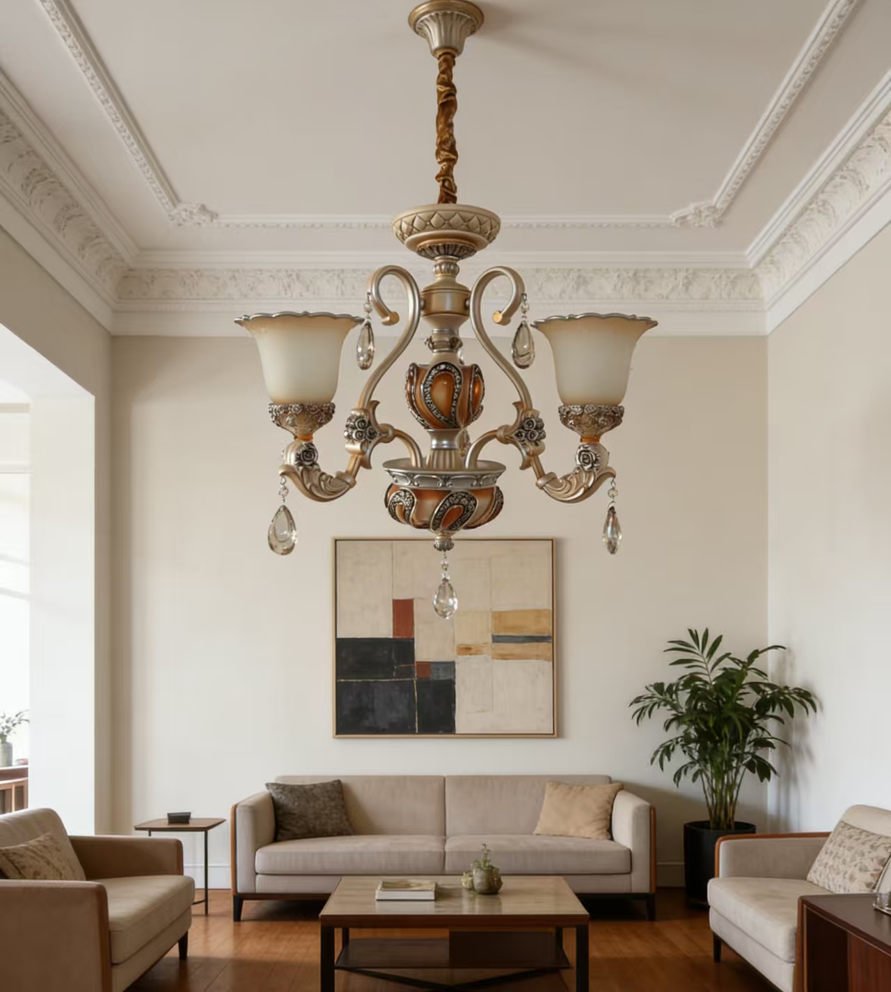 材质:铁艺树脂+玻璃灯罩