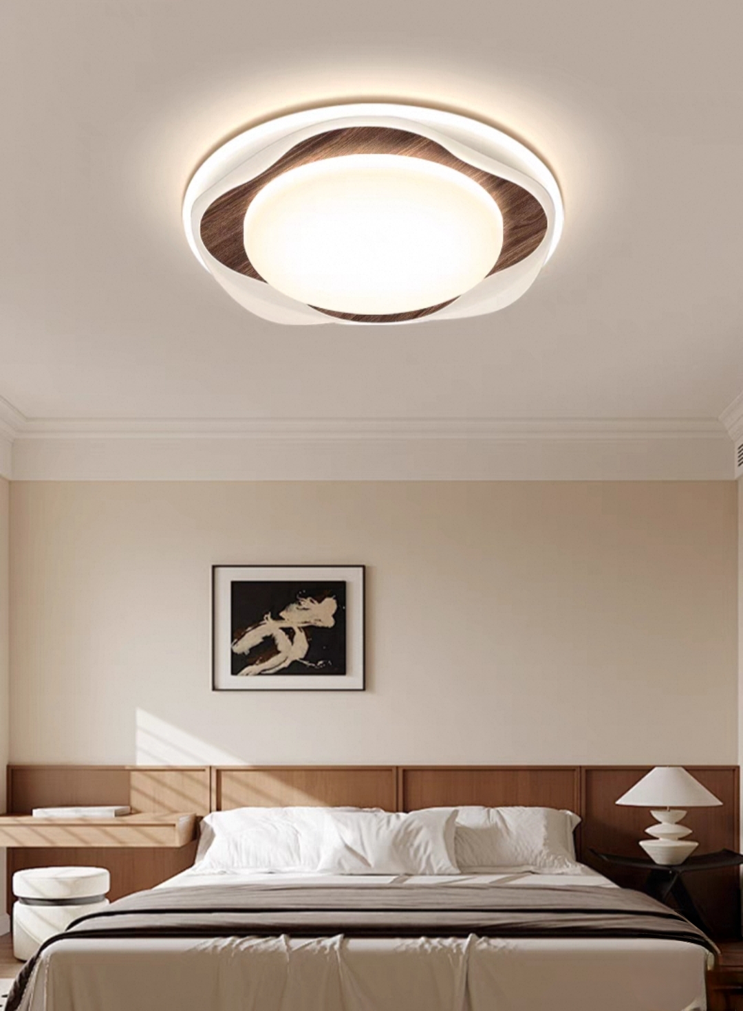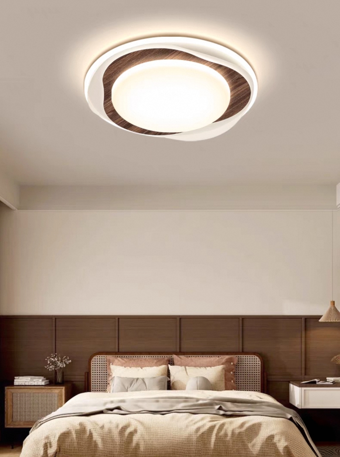 餐厅:6021-圆饼胡桃木:底盘600mm LED三色变光