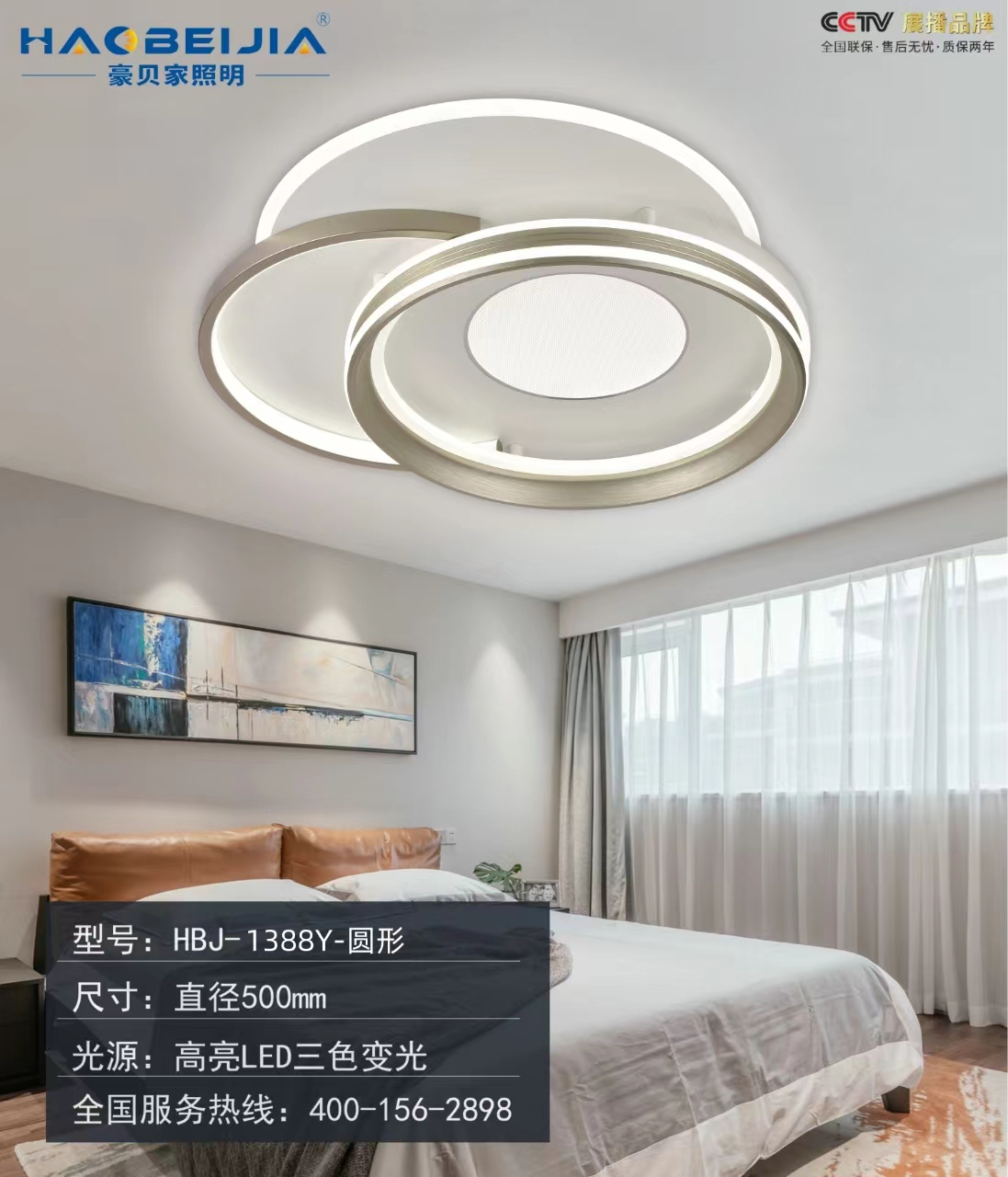 卧室三:1388-圆形:500mm LED三色变光