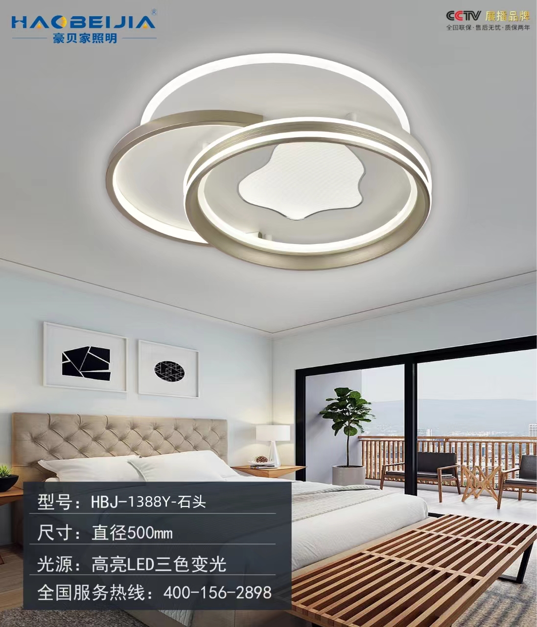 卧室二:1388-石头:500mm LED三色变光