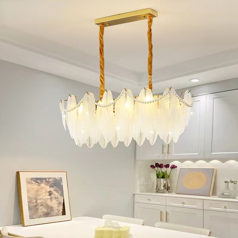 餐厅灯:7799A-珍珠羽毛椭圆:800*350mm E14×8个(不含)(不含)