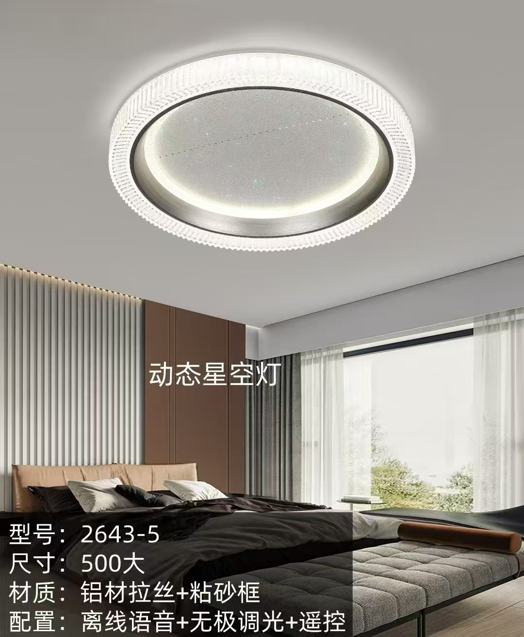 卧室二:2643-5白:500mm 离线语音+无极遥控调光LED三色变光