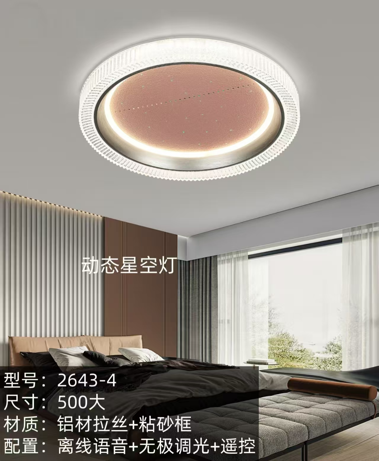 卧室三:2643-4粉:500mm 离线语音+无极遥控调光LED三色变光