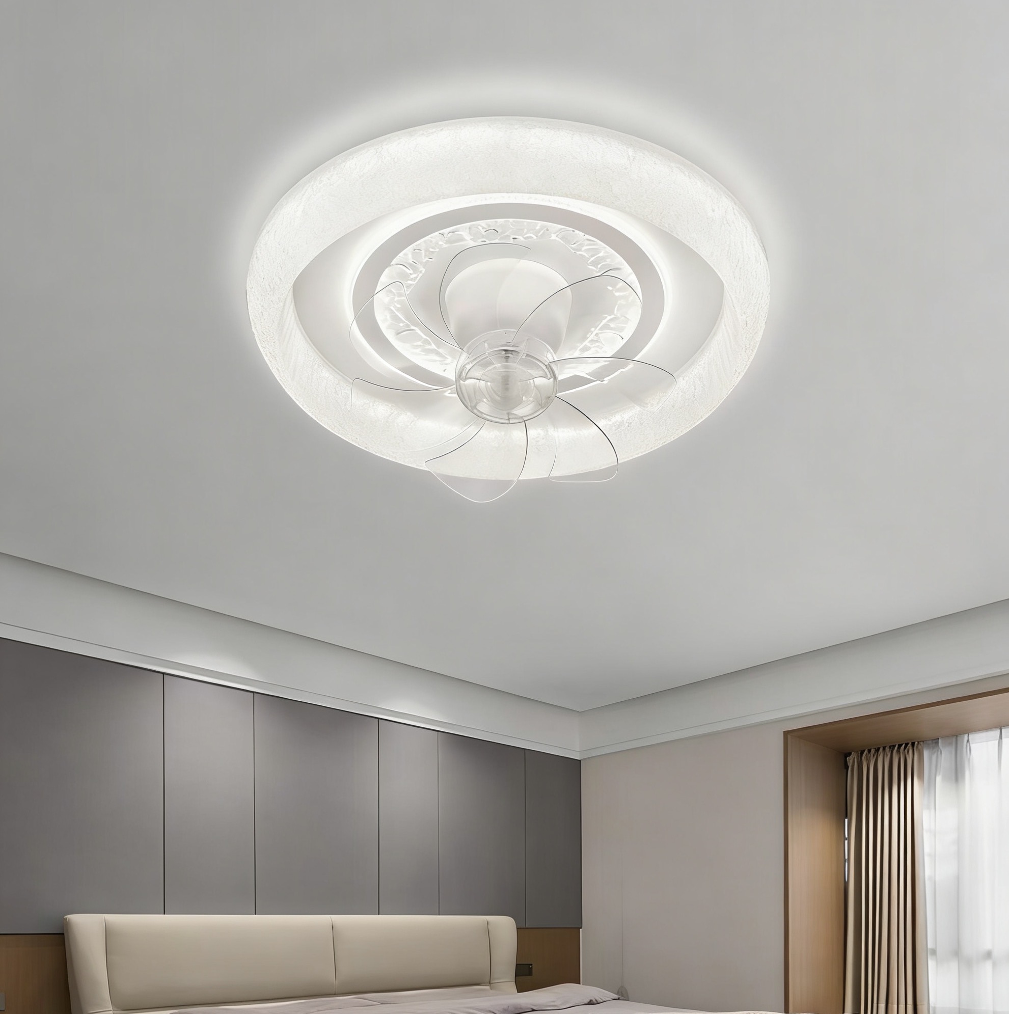 光源:离线语音LED三色变光,六档变速+遥控